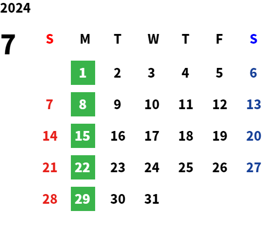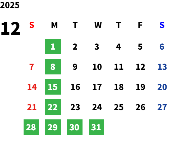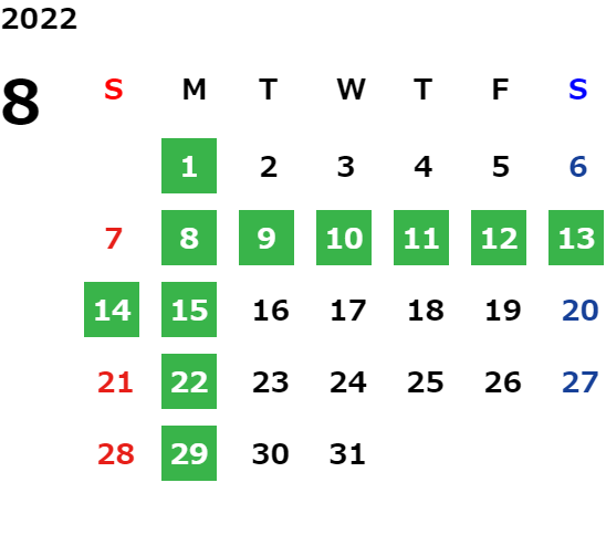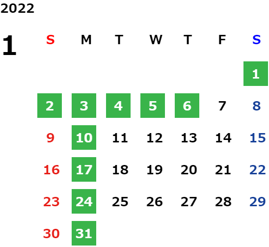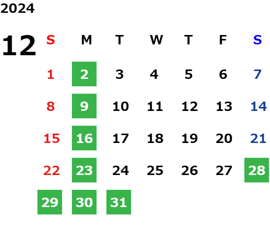 車検・整備・メンテナンス取扱店 営業日カレンダー