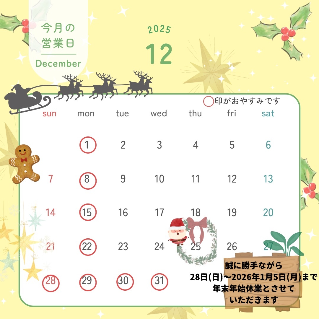 🎅12月営業日のご案内🎄