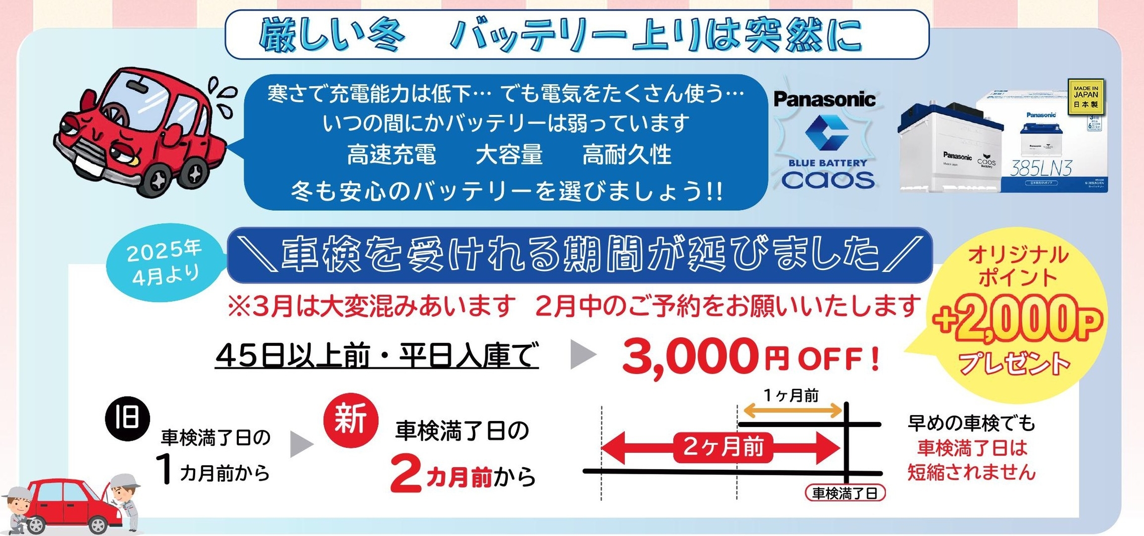 2025年4月より2か月前から車検を受けられるようになりました